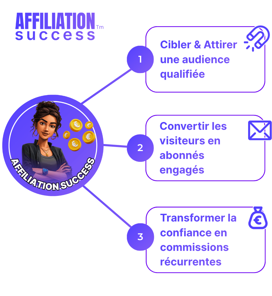 Les stratégies enseignées dans AFFILIATION SUCCESS™ fonctionnent dans n'importe quelle niche : développement personnel, business, santé, fitness, finance, parentalité, etc.