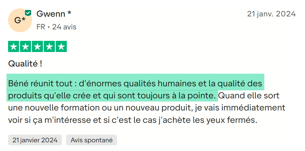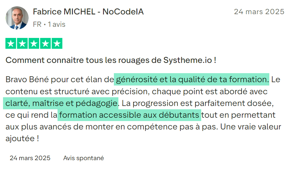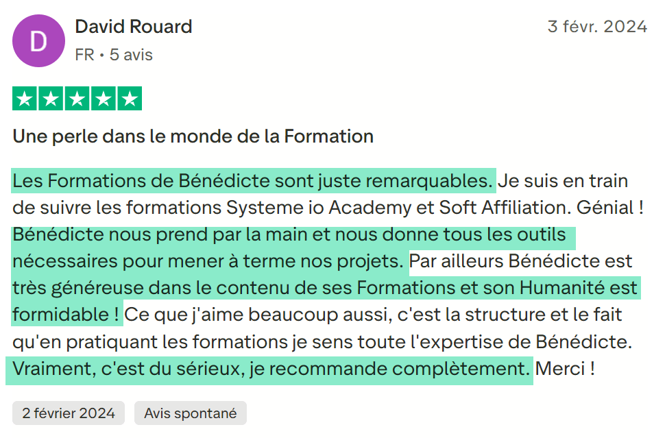 C'est comme si tu avais créé toi-même cette formation, mais en gagnant des mois de travail. Je ne serais jamais derrière toi pour tracker ce que tu fais. Je te donne les clés, tu es propriétaire !