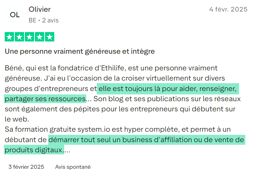 Et me permet de vivre à 100% de l'affiliation depuis 5 ans
